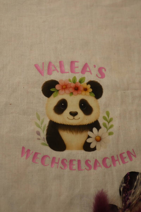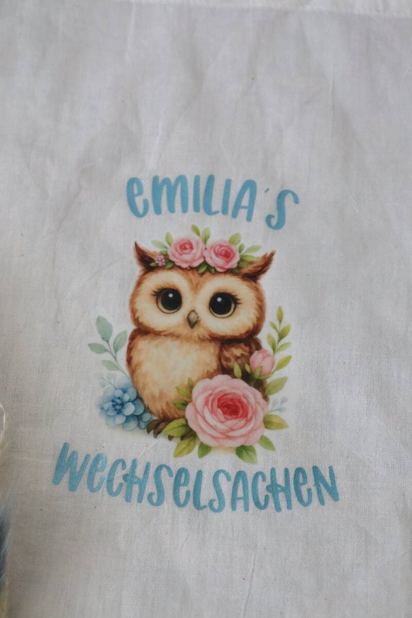 Im individuellen und personalisierten Wechselkleider Sack finden die Kleider der Kleinen tierisch viel Platz und sind mit einem Griff bereit.