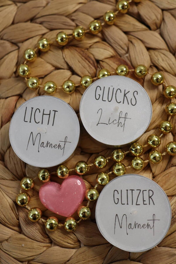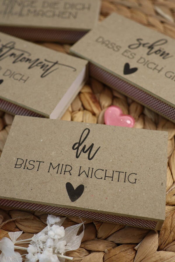 drei personalisierte Kerzli und eine Schachtel Streichhölzer mit einer persönlichen Botschaft